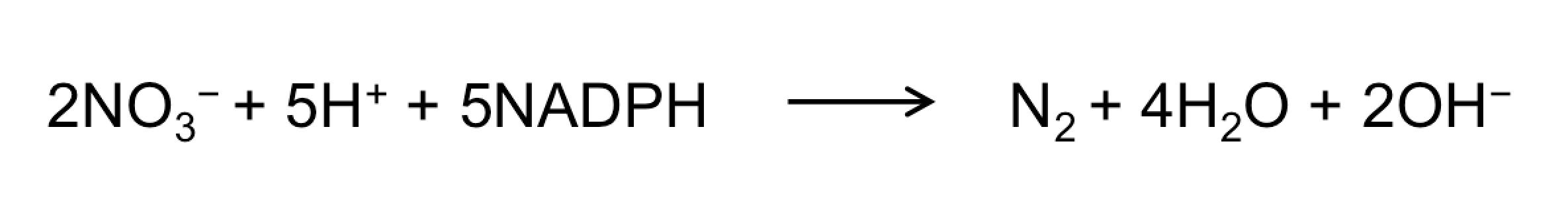 そして,水槽やろ過層の中に,酸素が無い場所をうまく作ることができると,硝酸イオンが ,脱窒菌によって,一酸化窒素,亜酸化窒素を経て,窒素ガス(無害)になります。
