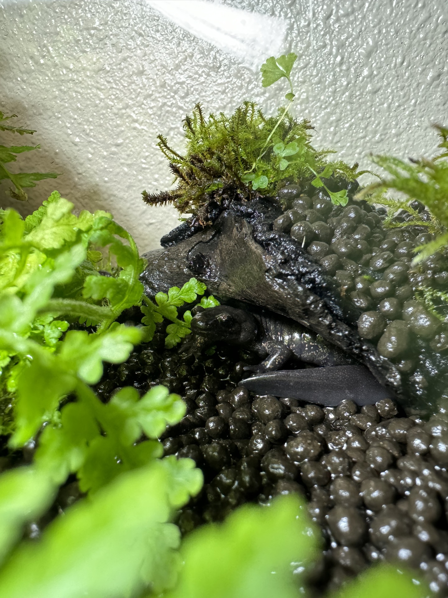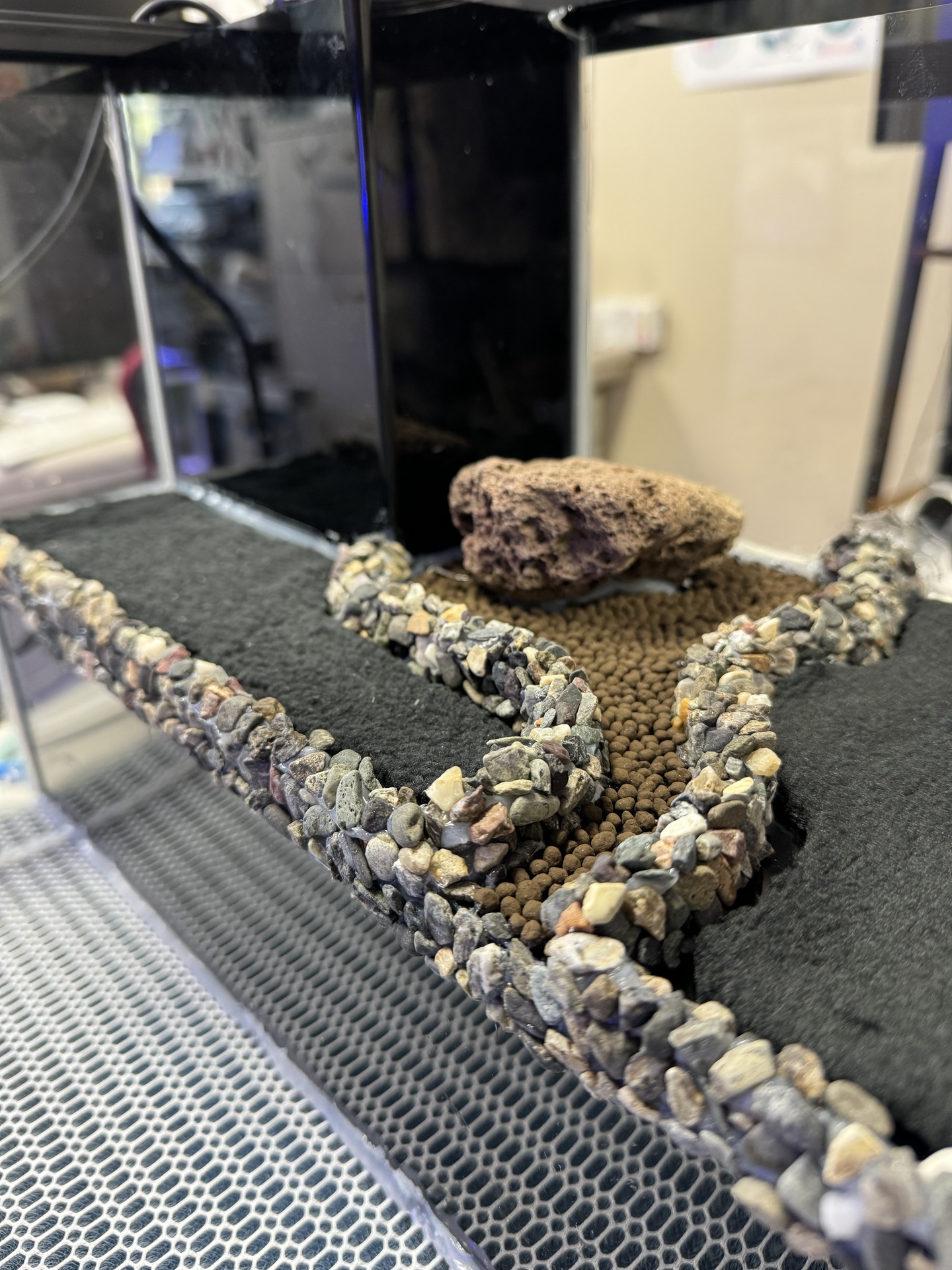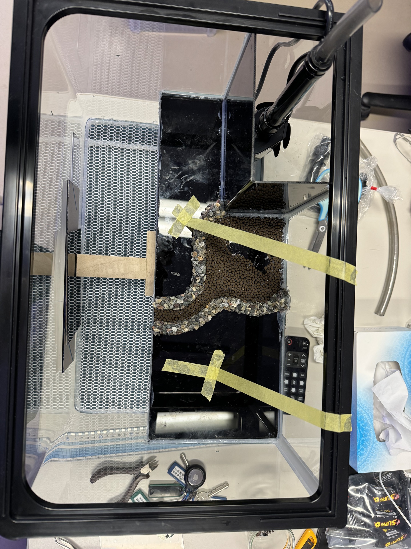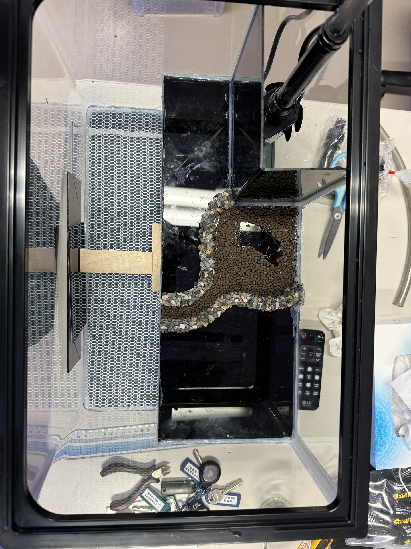 8. 完成です。丸粒土をいれ,コケやシダを植えてから,ポンプを動かして,1,2ヶ月間放置します。コケが根付いたら,生体をいれます。