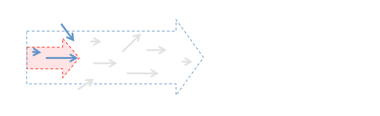 各矢印が投稿論文1つ1つを示し,矢印の長さが論文のサイズを示す。博士課程,および学位取得後に執筆する10報の投稿論文を用いて,大きな研究課題の解決に挑戦する。
