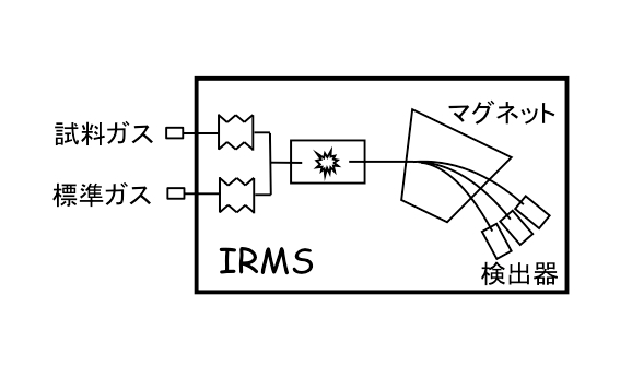 試料導入 → ガス化 → GC → IRMS
