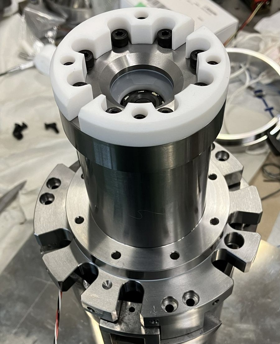 倒立型の液相チャンバーの製作を行いました。このチャンバーは過冷却の水の中を成長する氷の界面をリアルタイムで観察できるチャンバーです。液中の温度を高精度に調整できるほか、全反射照明用のプリズムを内蔵しており、エバネッセント光を用いて氷界面上の不純物も高感度で観察できる仕様になっています。